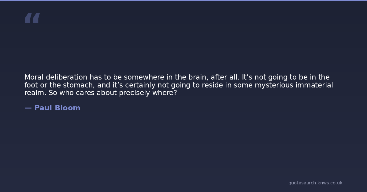 Moral deliberation has to be somewhere in the brain, after all. It’s not going to be in the foot or the stomach, and it’s certainly not going to reside in some mysterious immaterial realm. So who cares about precisely where?