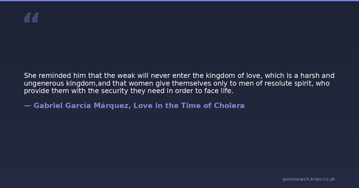 She reminded him that the weak will never enter the kingdom of love, which is a harsh and ungenerous kingdom,and that women give themselves only to men of resolute spirit, who provide them with the security they need in order to face life.