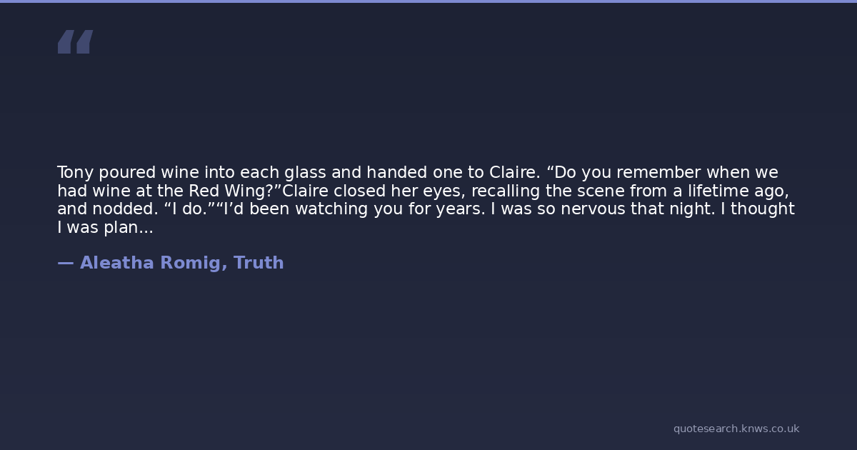 Tony poured wine into each glass and handed one to Claire. “Do you remember when we had wine at the Red Wing?”Claire closed her eyes, recalling the scene from a lifetime ago, and nodded. “I do.”“I’d been watching you for years. I was so nervous that night. I thought I was planning your acquisition.” He looked into his red liquid. Her stance straightened, “If you’re using business metaphors, may I suggest hostile takeover. It’s more appropriate.