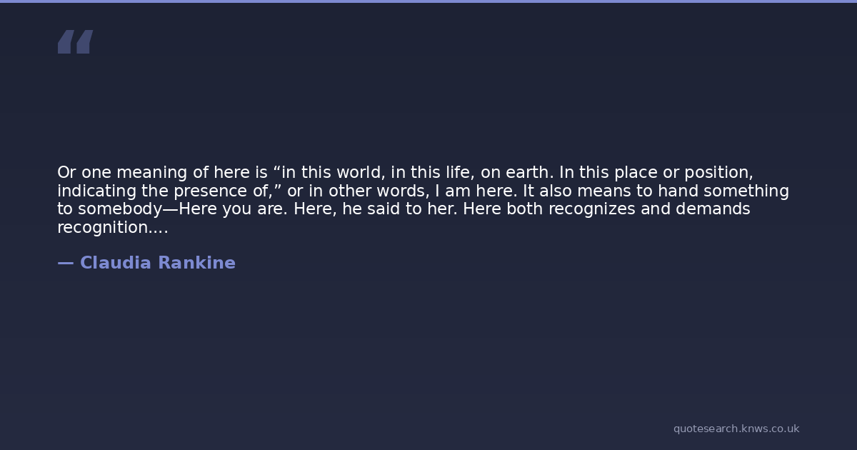 Claudia Rankine was a contemporary American american poet, essayist, and playwright. Claudia Rankine is a Jamaican-American poet, essayist, playwright, and the editor of several anthologies. She is the author of five volumes of poetry, two plays and various essays. Read more on Wikipedia →