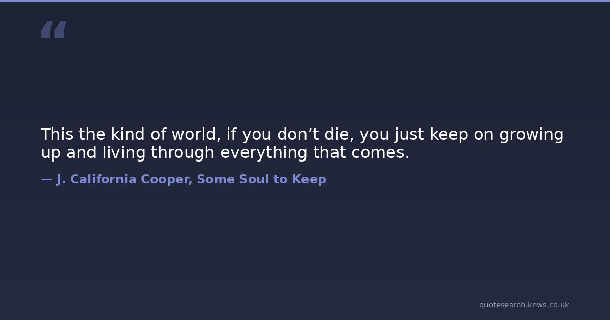 This the kind of world, if you don’t die, you just keep on growing up and living through everything that comes.