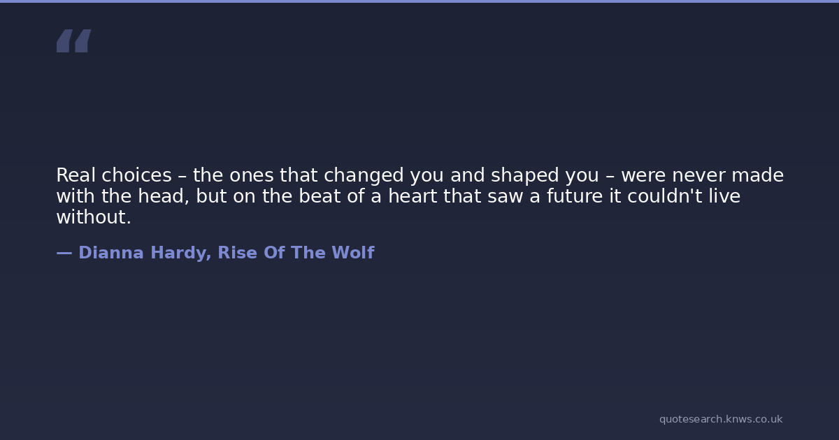 Real choices – the ones that changed you and shaped you – were never made with the head, but on the beat of a heart that saw a future it couldn't live without.