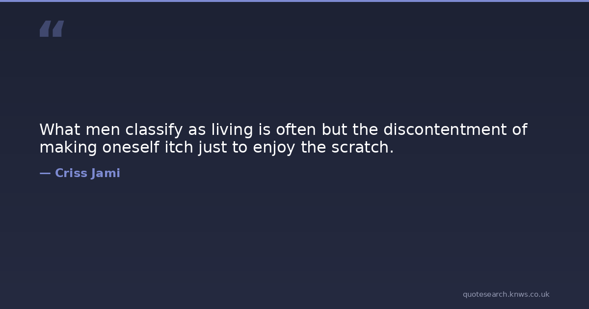 What men classify as living is often but the discontentment of making oneself itch just to enjoy the scratch.
