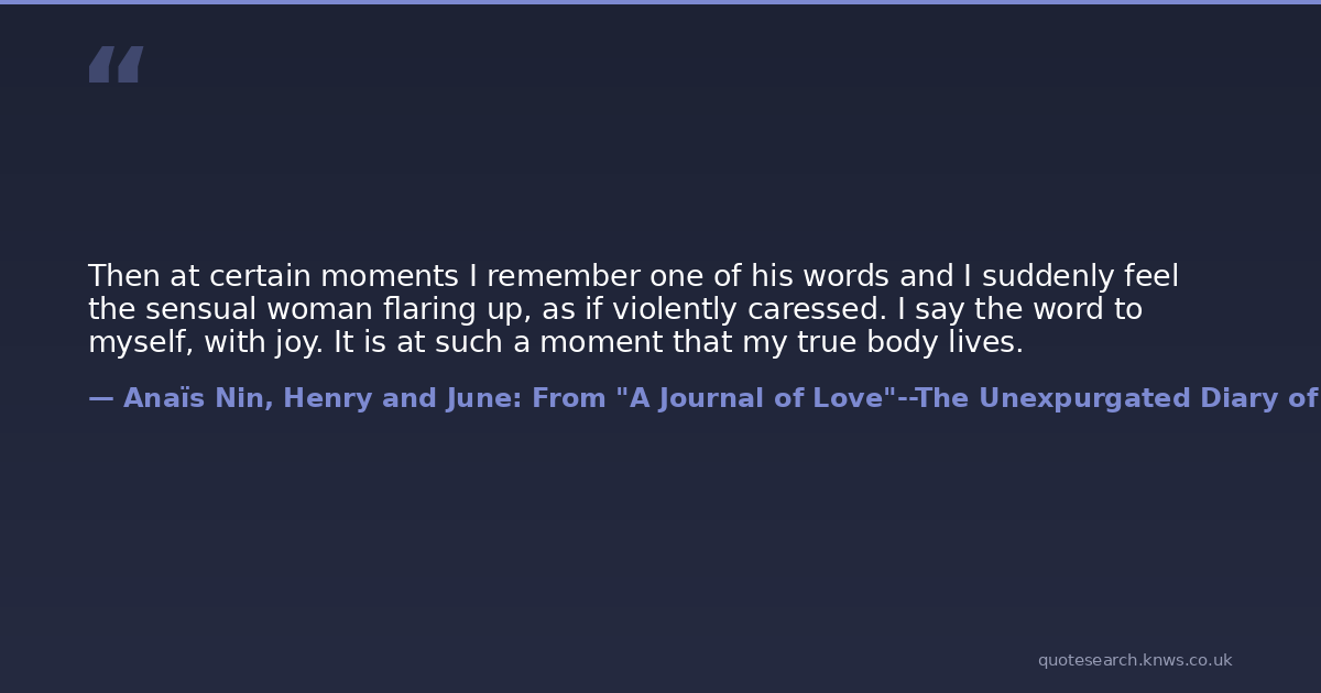 Then at certain moments I remember one of his words and I suddenly feel the sensual woman flaring up, as if violently caressed. I say the word to myself, with joy. It is at such a moment that my true body lives.