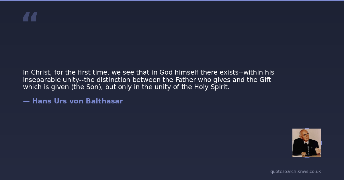 In Christ, for the first time, we see that in God himself there exists--within his inseparable unity--the distinction between the Father who gives and the Gift which is given (the Son), but only in the unity of the Holy Spirit.