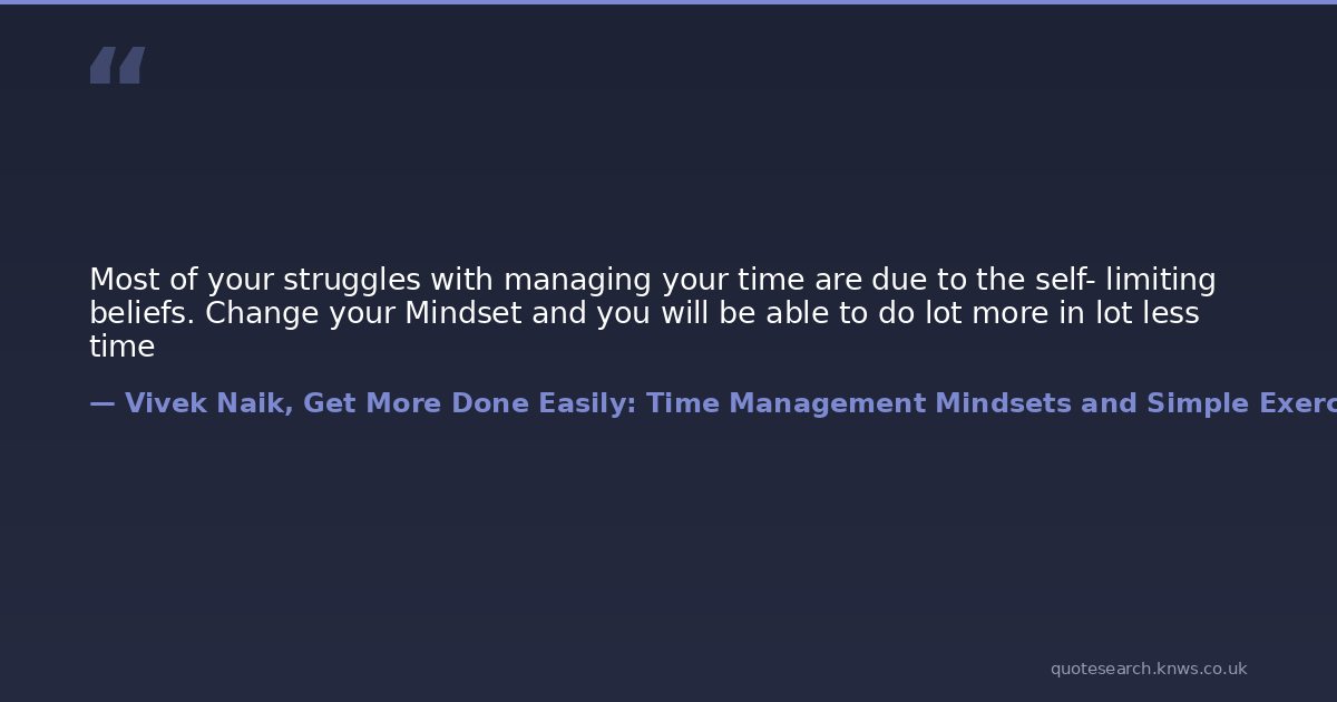 Most of your struggles with managing your time are due to the self- limiting beliefs. Change your Mindset and you will be able to do lot more in lot less time
