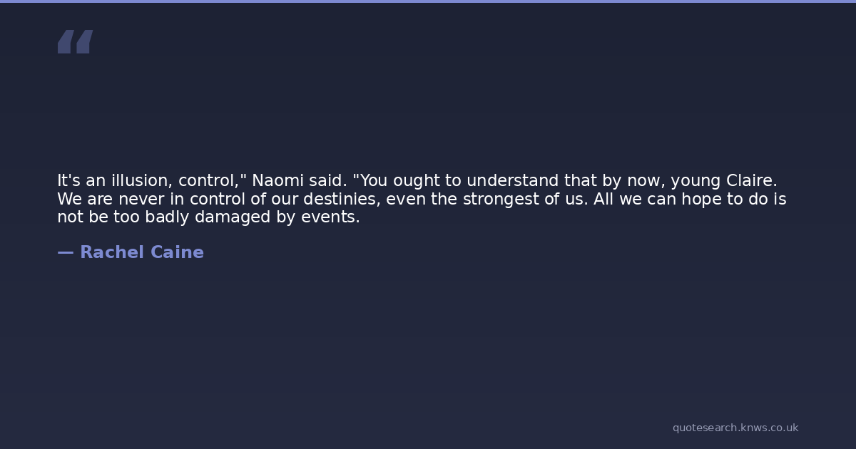 It's an illusion, control," Naomi said. "You ought to understand that by now, young Claire. We are never in control of our destinies, even the strongest of us. All we can hope to do is not be too badly damaged by events.