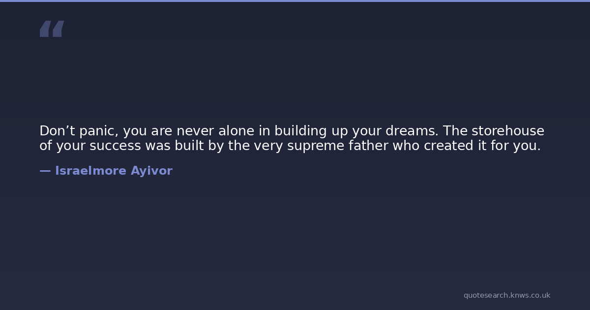 Don’t panic, you are never alone in building up your dreams. The storehouse of your success was built by the very supreme father who created it for you.
