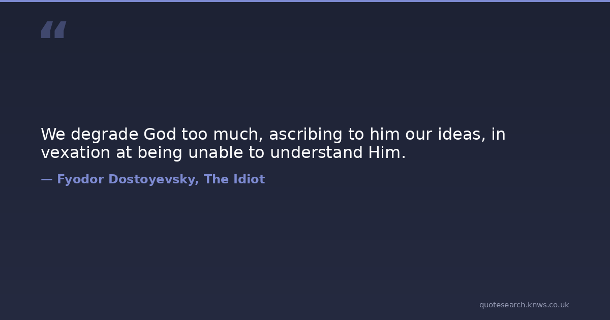 We degrade God too much, ascribing to him our ideas, in vexation at being unable to understand Him.