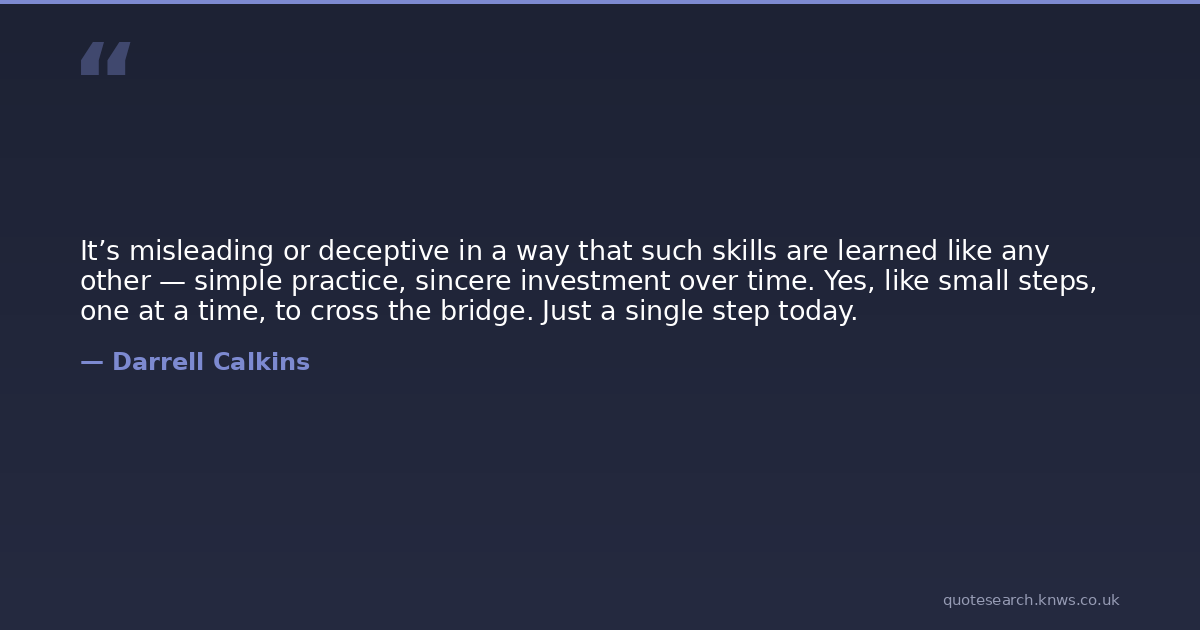 It’s misleading or deceptive in a way that such skills are learned like any other — simple practice, sincere investment over time. Yes, like small steps, one at a time, to cross the bridge. Just a single step today.