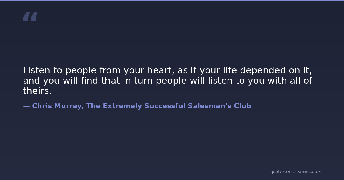 Listen to people from your heart, as if your life depended on it, and you will find that in turn people will listen to you with all of theirs.
