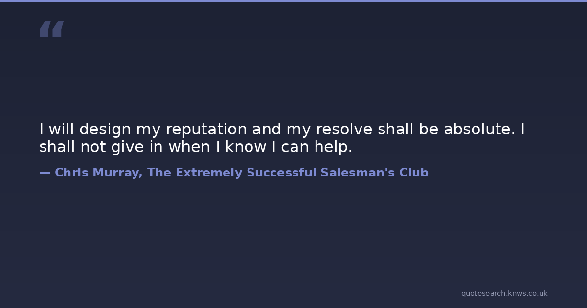 I will design my reputation and my resolve shall be absolute. I shall not give in when I know I can help.