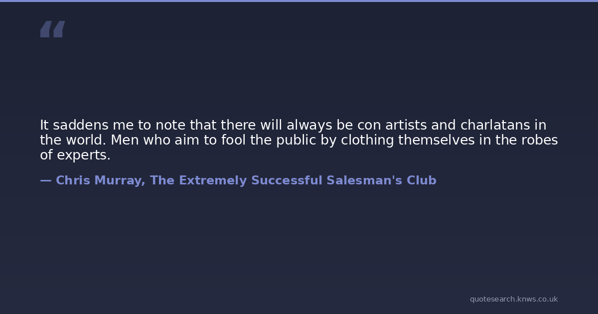 It saddens me to note that there will always be con artists and charlatans in the world. Men who aim to fool the public by clothing themselves in the robes of experts.