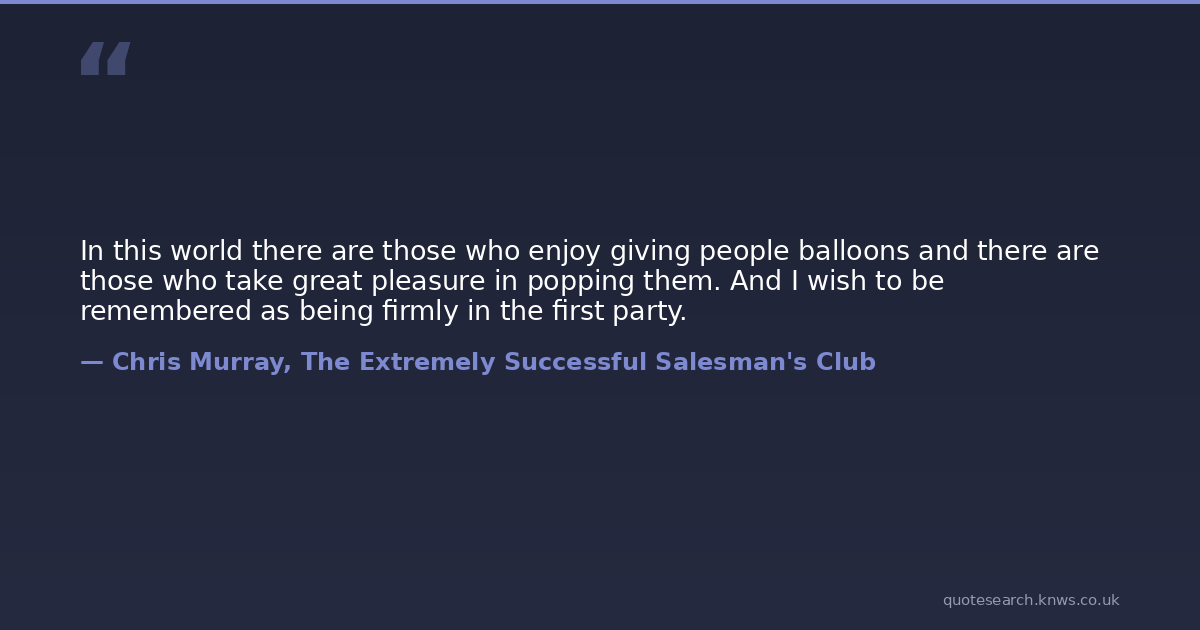In this world there are those who enjoy giving people balloons and there are those who take great pleasure in popping them. And I wish to be remembered as being firmly in the first party.