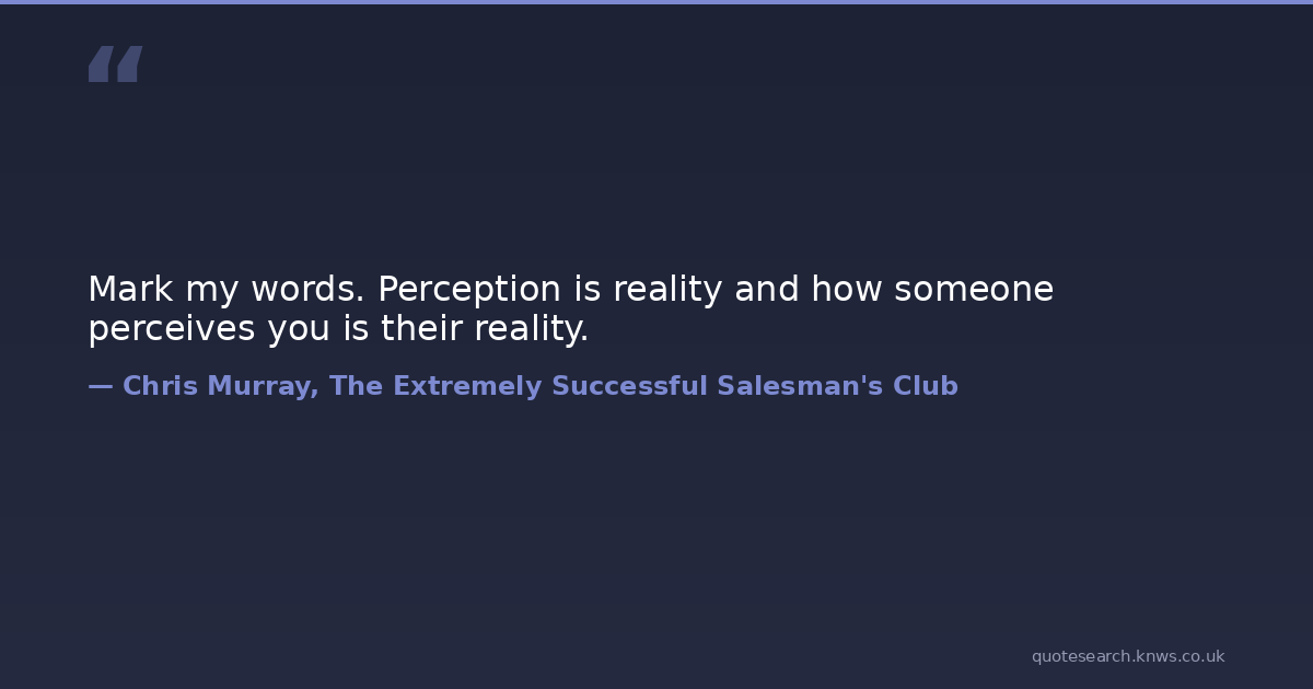 Mark my words. Perception is reality and how someone perceives you is their reality.