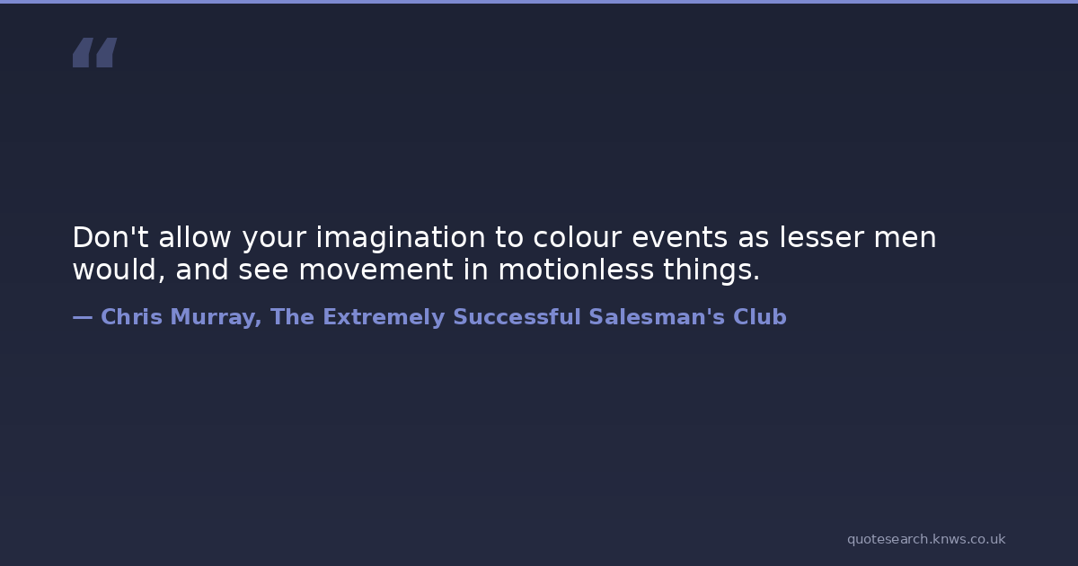 Don't allow your imagination to colour events as lesser men would, and see movement in motionless things.