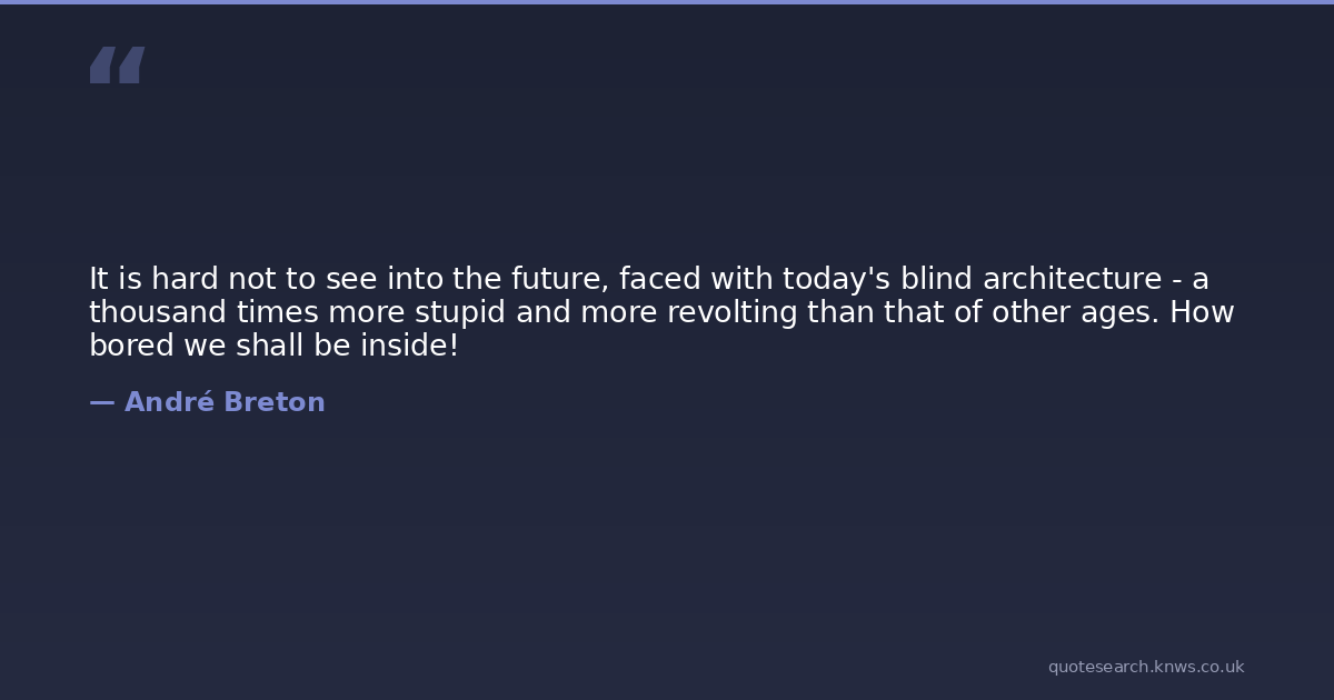 It is hard not to see into the future, faced with today's blind architecture - a thousand times more stupid and more revolting than that of other ages. How bored we shall be inside!