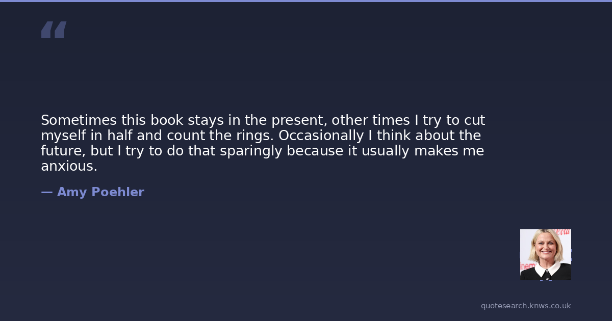Sometimes this book stays in the present, other times I try to cut myself in half and count the rings. Occasionally I think about the future, but I try to do that sparingly because it usually makes me anxious.