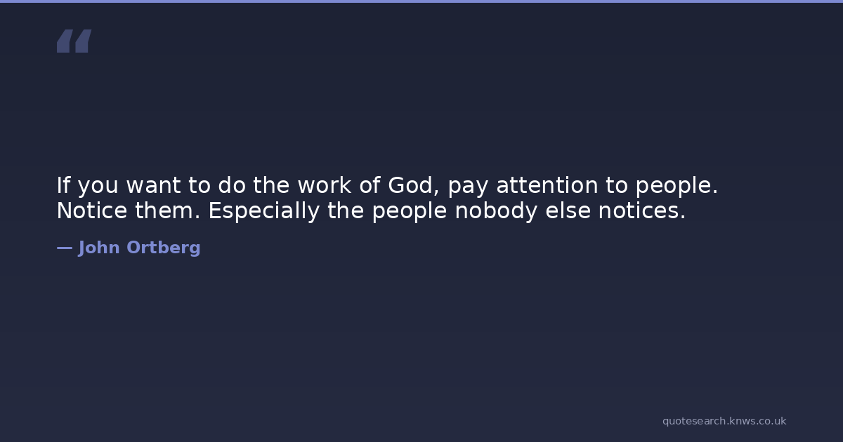 If you want to do the work of God, pay attention to people. Notice them. Especially the people nobody else notices.