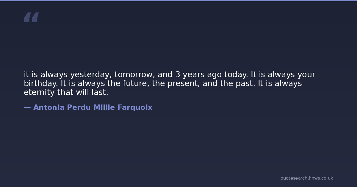 it is always yesterday, tomorrow, and 3 years ago today. It is always your birthday. It is always the future, the present, and the past. It is always eternity that will last.