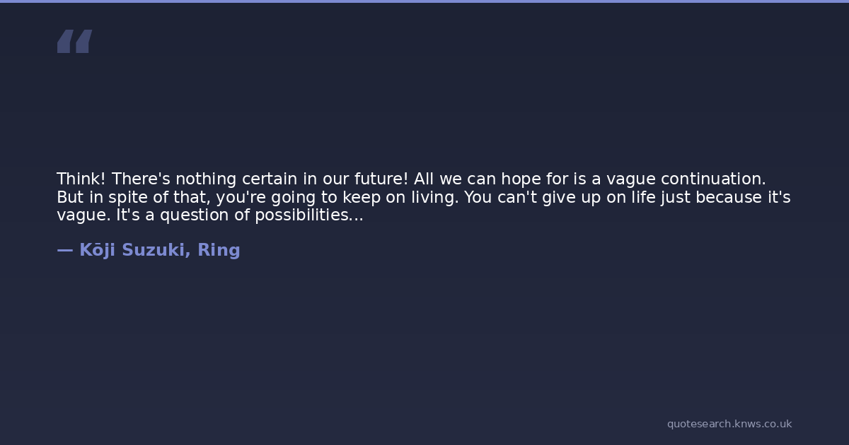 Think! There's nothing certain in our future! All we can hope for is a vague continuation. But in spite of that, you're going to keep on living. You can't give up on life just because it's vague. It's a question of possibilities...