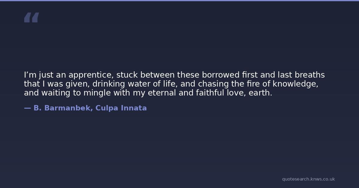 I’m just an apprentice, stuck between these borrowed first and last breaths that I was given, drinking water of life, and chasing the fire of knowledge, and waiting to mingle with my eternal and faithful love, earth.