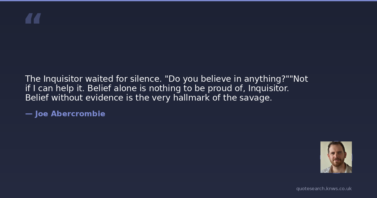 The Inquisitor waited for silence. "Do you believe in anything?""Not if I can help it. Belief alone is nothing to be proud of, Inquisitor. Belief without evidence is the very hallmark of the savage.