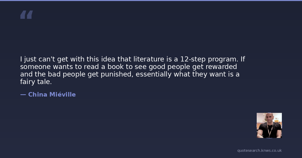 I just can't get with this idea that literature is a 12-step program. If someone wants to read a book to see good people get rewarded and the bad people get punished, essentially what they want is a fairy tale.