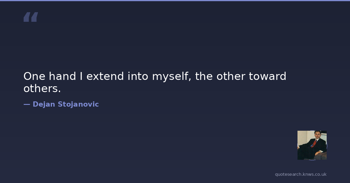 One hand I extend into myself, the other toward others.