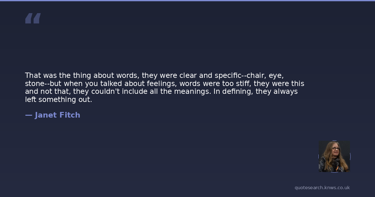 That was the thing about words, they were clear and specific--chair, eye, stone--but when you talked about feelings, words were too stiff, they were this and not that, they couldn't include all the meanings. In defining, they always left something out.