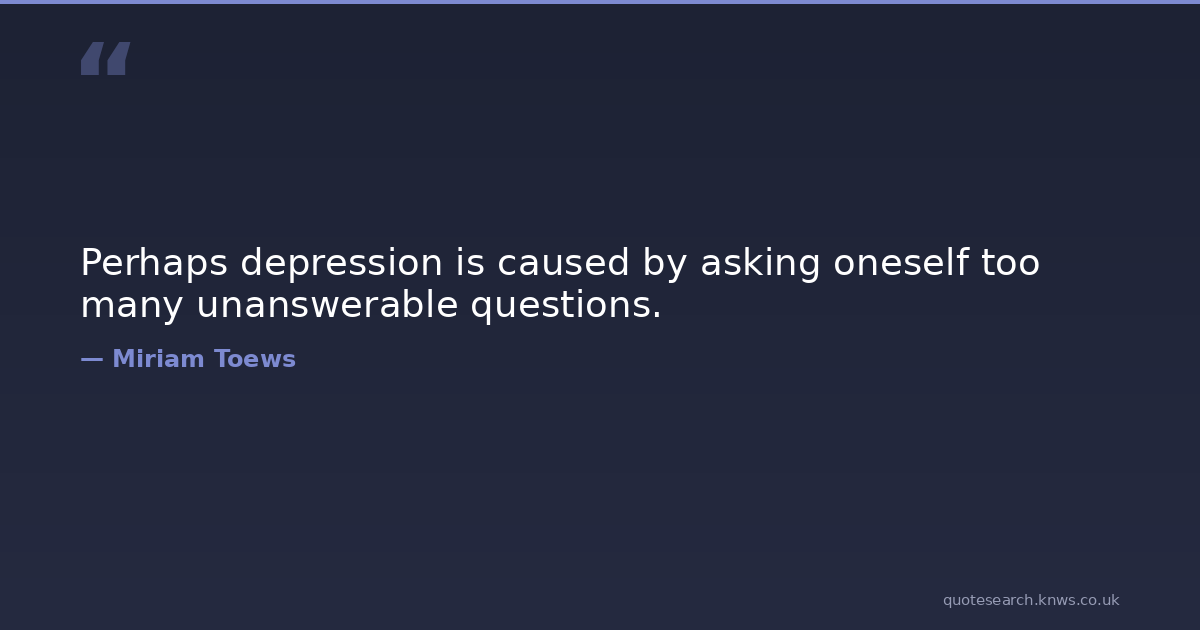 Perhaps depression is caused by asking oneself too many unanswerable questions.