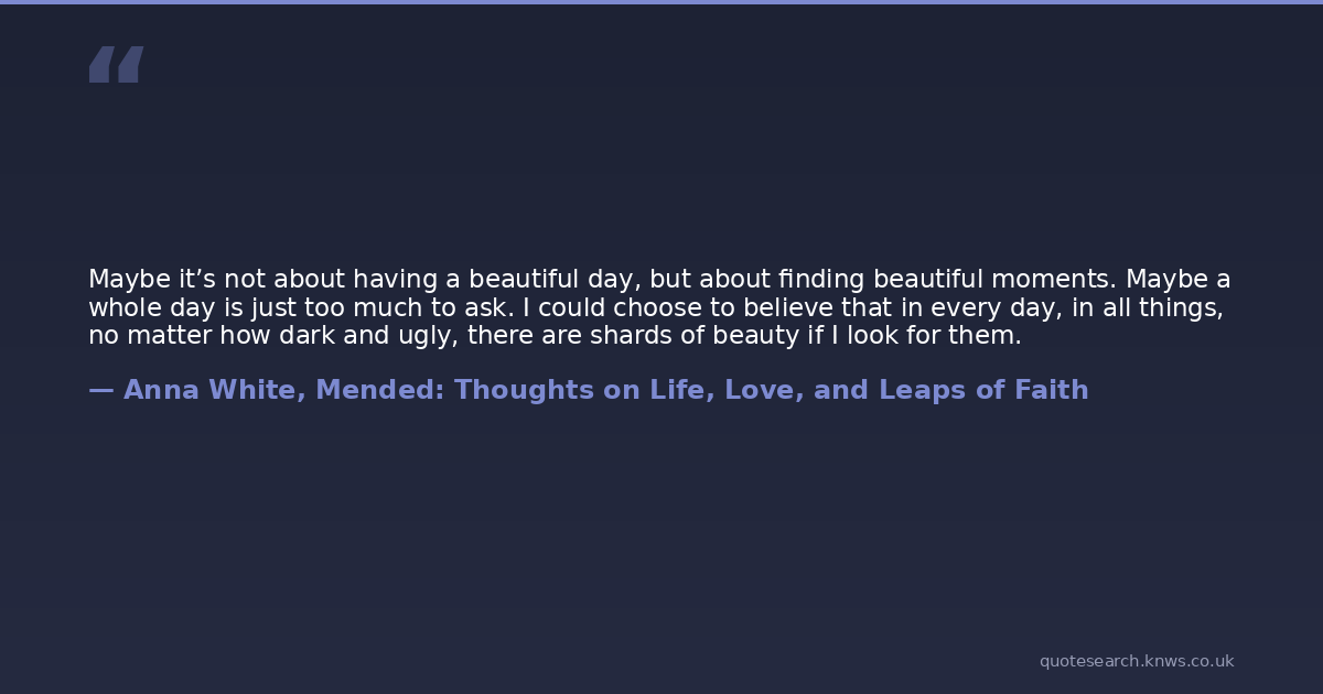Maybe it’s not about having a beautiful day, but about finding beautiful moments. Maybe a whole day is just too much to ask. I could choose to believe that in every day, in all things, no matter how dark and ugly, there are shards of beauty if I look for them.