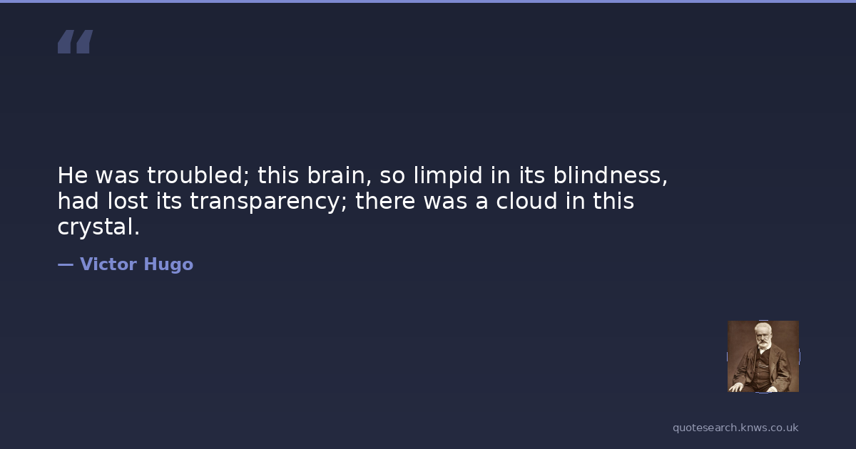 He was troubled; this brain, so limpid in its blindness, had lost its transparency; there was a cloud in this crystal.