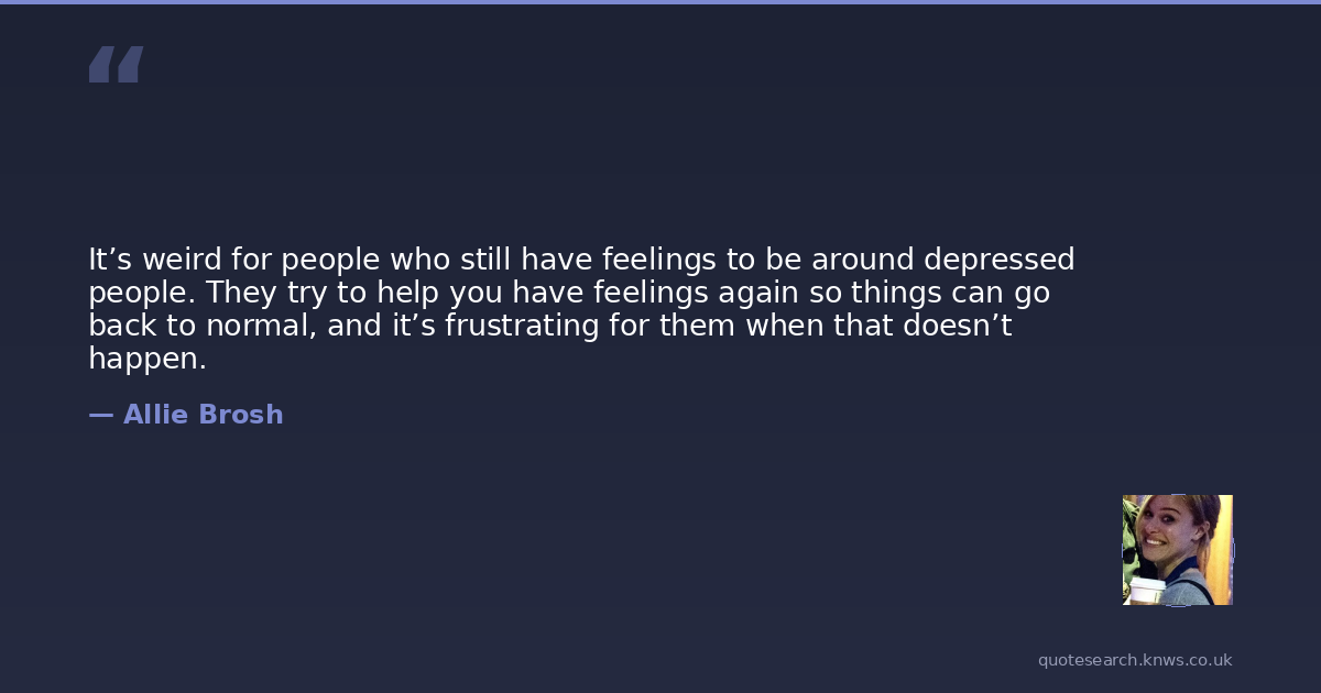 It’s weird for people who still have feelings to be around depressed people. They try to help you have feelings again so things can go back to normal, and it’s frustrating for them when that doesn’t happen.