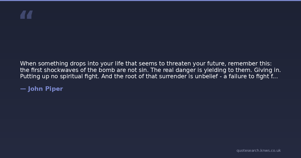 When something drops into your life that seems to threaten your future, remember this: the first shockwaves of the bomb are not sin. The real danger is yielding to them. Giving in. Putting up no spiritual fight. And the root of that surrender is unbelief - a failure to fight for faith in future grace. A failure to cherish all that God promises to be for us in Jesus.