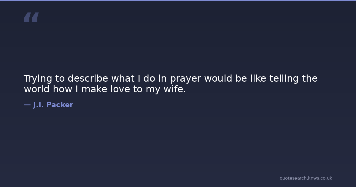 Trying to describe what I do in prayer would be like telling the world how I make love to my wife.