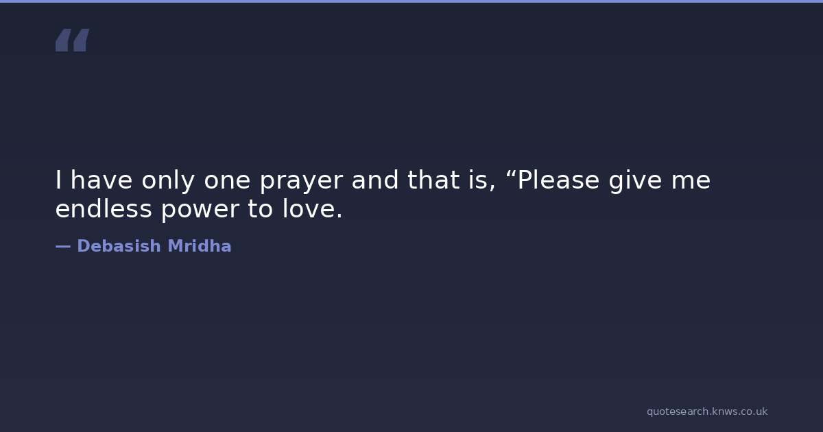 I have only one prayer and that is, “Please give me endless power to love.