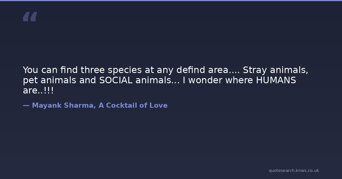 You can find three species at any defind area.... Stray animals, pet animals and SOCIAL animals... I wonder where HUMANS are..!!!