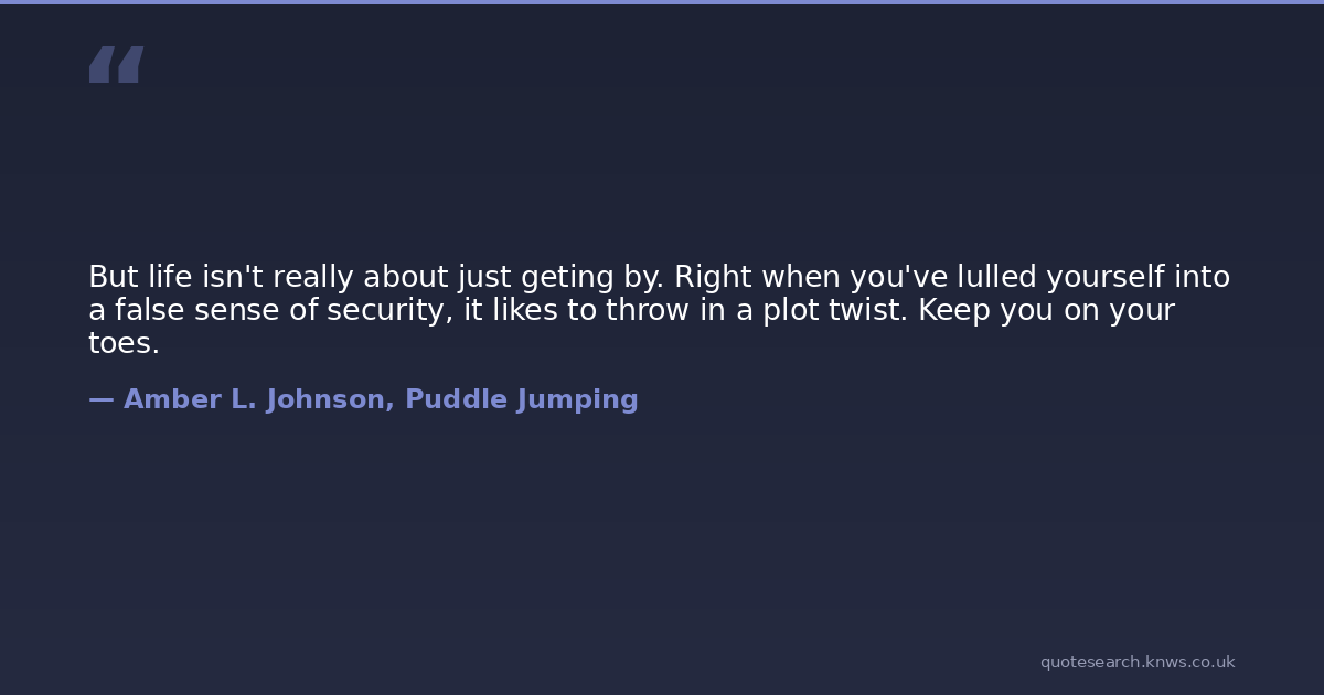 But life isn't really about just geting by. Right when you've lulled yourself into a false sense of security, it likes to throw in a plot twist. Keep you on your toes.