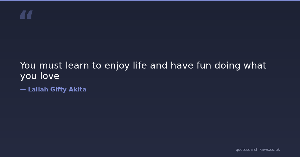You must learn to enjoy life and have fun doing what you love learn learner learning learning-to-shine life life-changing love love-quote Download Image Share on X Share on Facebook Copy Link