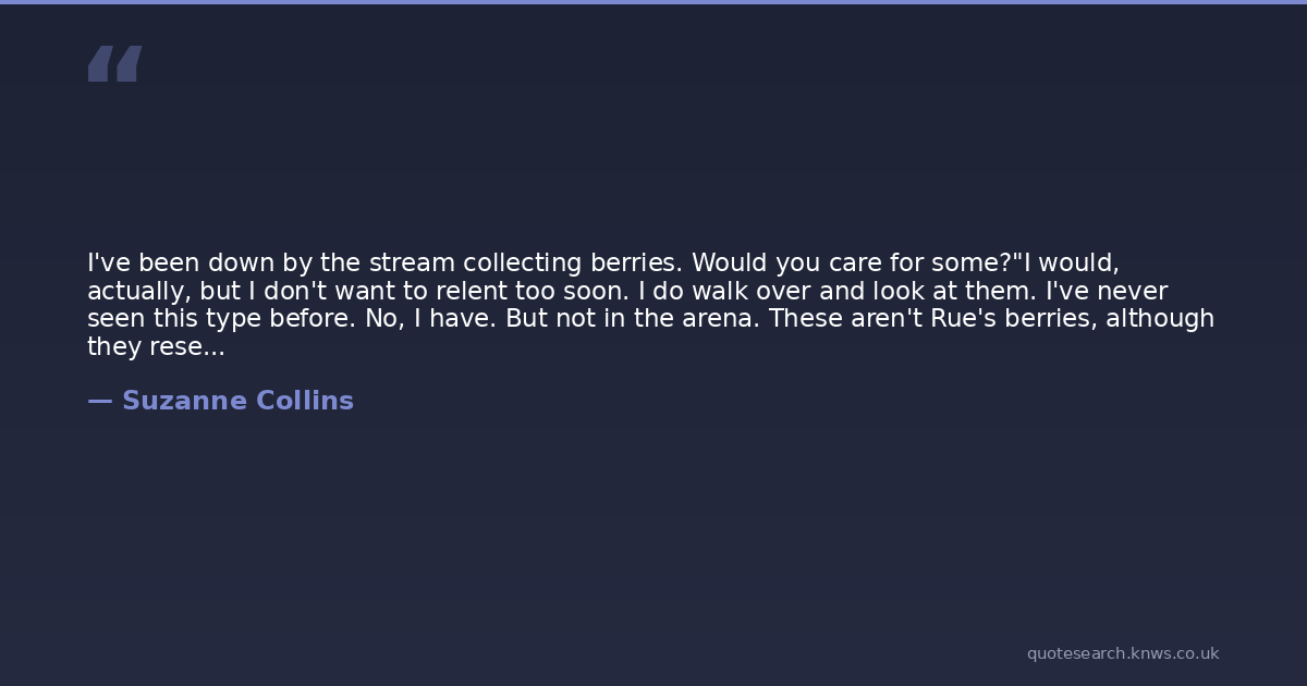 I've been down by the stream collecting berries. Would you care for some?"I would, actually, but I don't want to relent too soon. I do walk over and look at them. I've never seen this type before. No, I have. But not in the arena. These aren't Rue's berries, although they resemble them. Nor do they match any I learned about in training. I lean down and scoop up a few, rolling them between my fingers.My father's voice comes back to me. "Not these, Katniss. Never these. They're nightlock. You'll be dead before they reach your stomach."Just then the cannon fires. I whip around, expecting Peeta to collapseto the ground, but he only raises his eyebrows. The hoovercraft appears a hundred metres or so away.What's left of Foxface's emaciated body is lifted into the air.