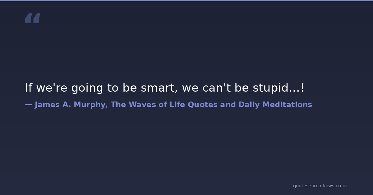 If we're going to be smart, we can't be stupid…!