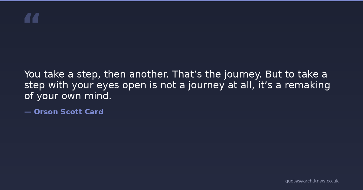 You take a step, then another. That’s the journey. But to take a step with your eyes open is not a journey at all, it’s a remaking of your own mind.