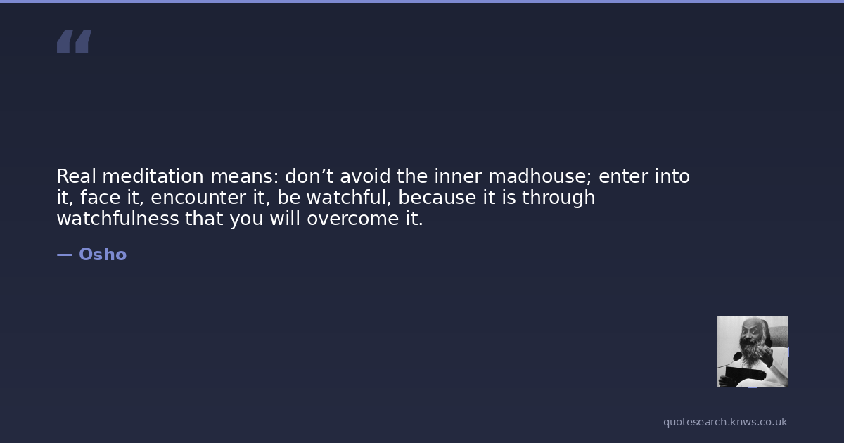 Real meditation means: don’t avoid the inner madhouse; enter into it, face it, encounter it, be watchful, because it is through watchfulness that you will overcome it.