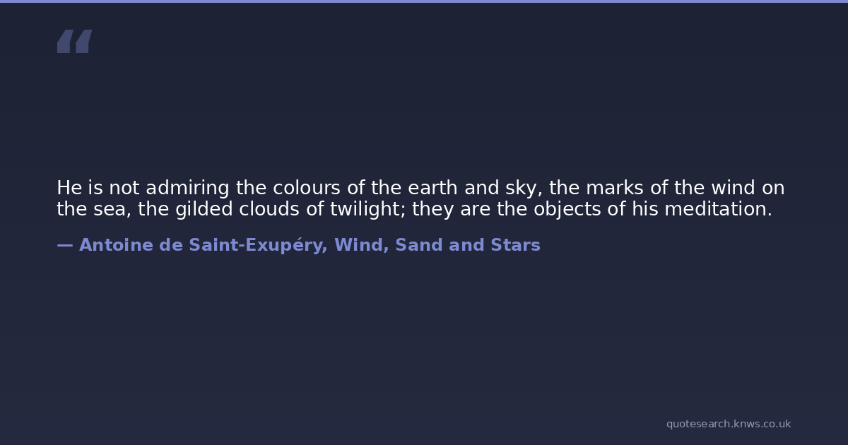He is not admiring the colours of the earth and sky, the marks of the wind on the sea, the gilded clouds of twilight; they are the objects of his meditation.