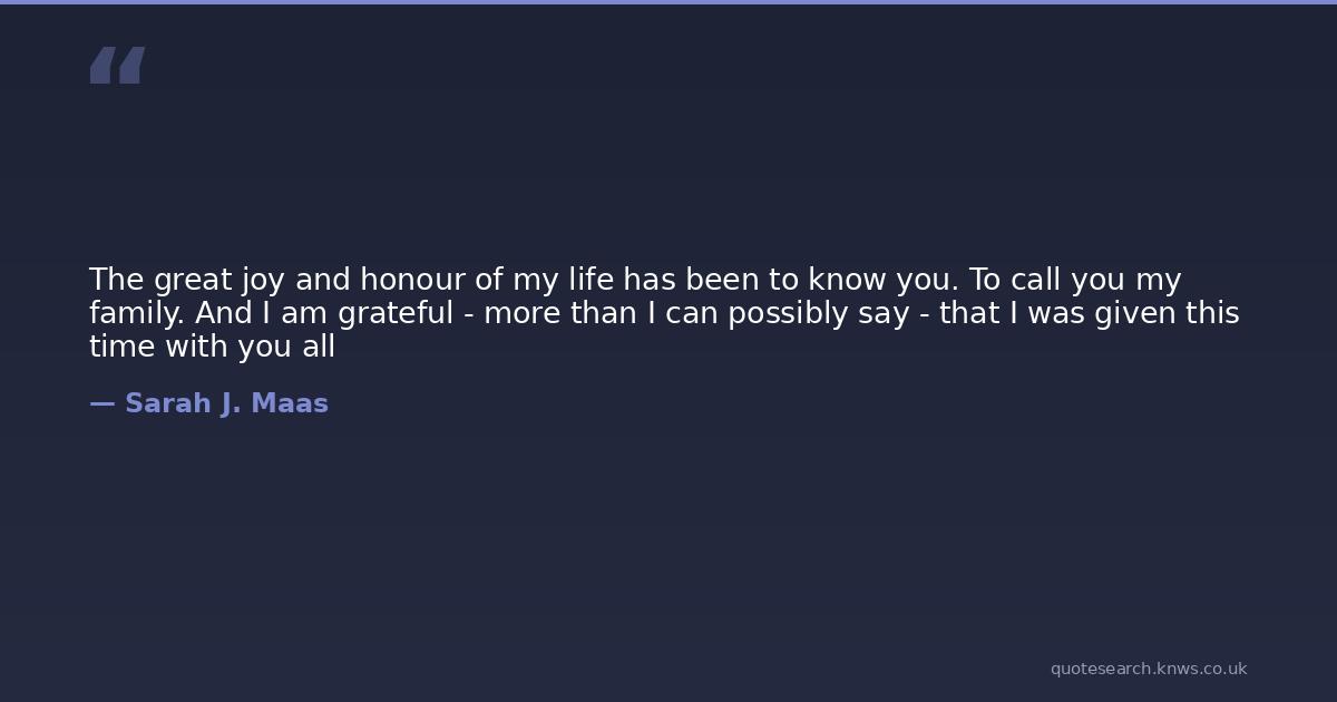 The great joy and honour of my life has been to know you. To call you my family. And I am grateful - more than I can possibly say - that I was given this time with you all