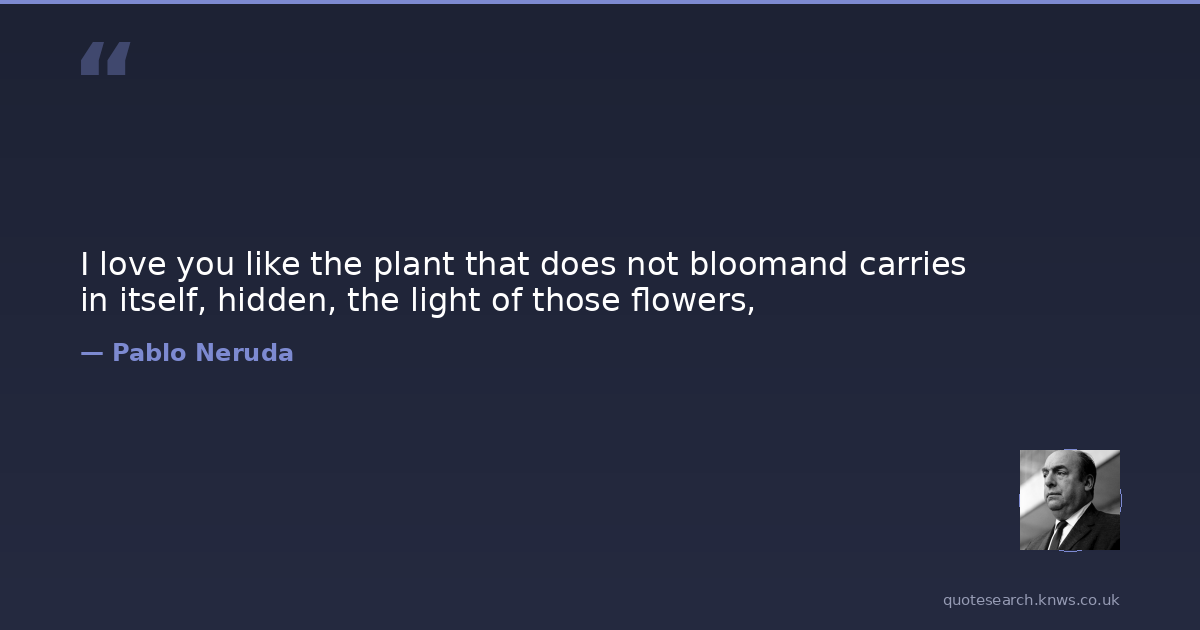 I love you like the plant that does not bloomand carries in itself, hidden, the light of those flowers,