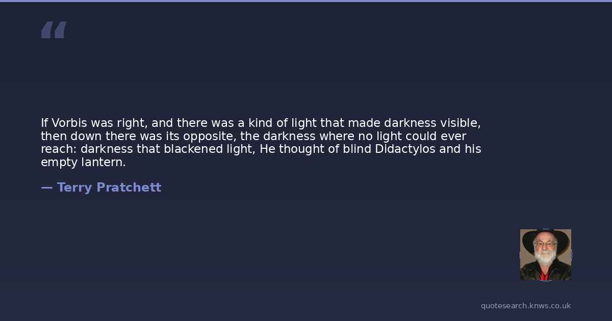 If Vorbis was right, and there was a kind of light that made darkness visible, then down there was its opposite, the darkness where no light could ever reach: darkness that blackened light, He thought of blind Didactylos and his empty lantern.