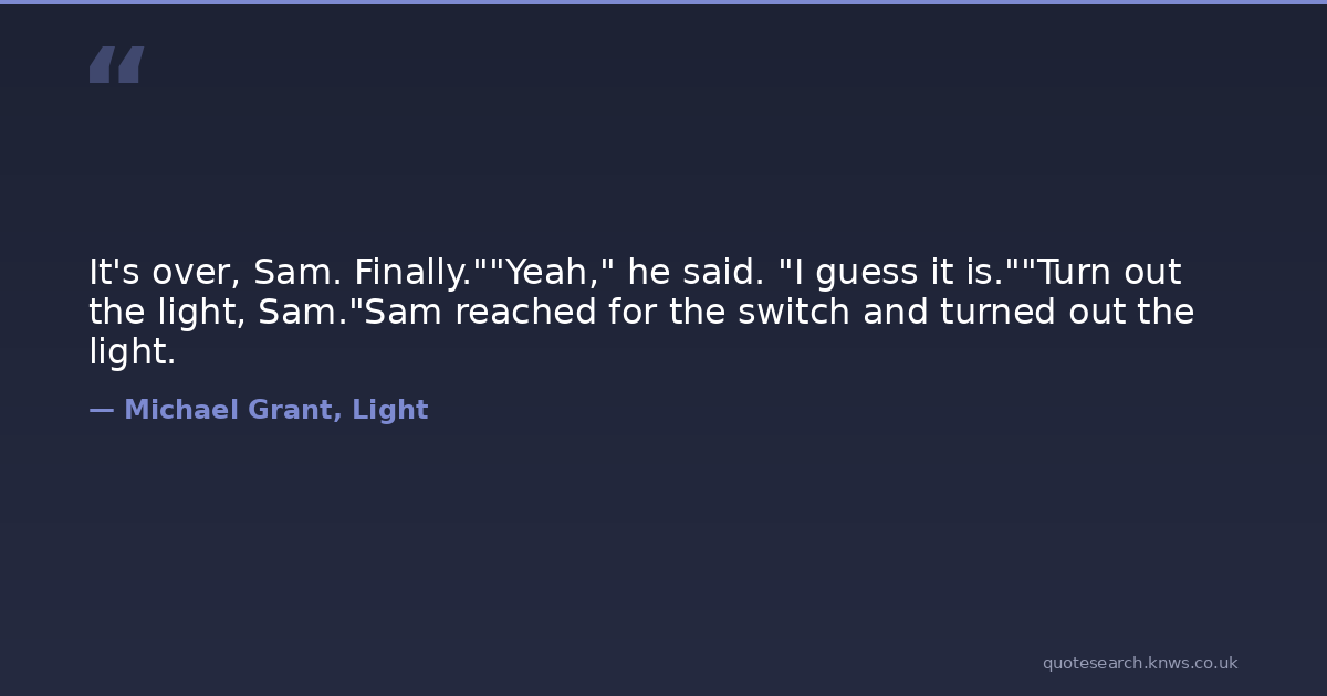 It's over, Sam. Finally.""Yeah," he said. "I guess it is.""Turn out the light, Sam."Sam reached for the switch and turned out the light.