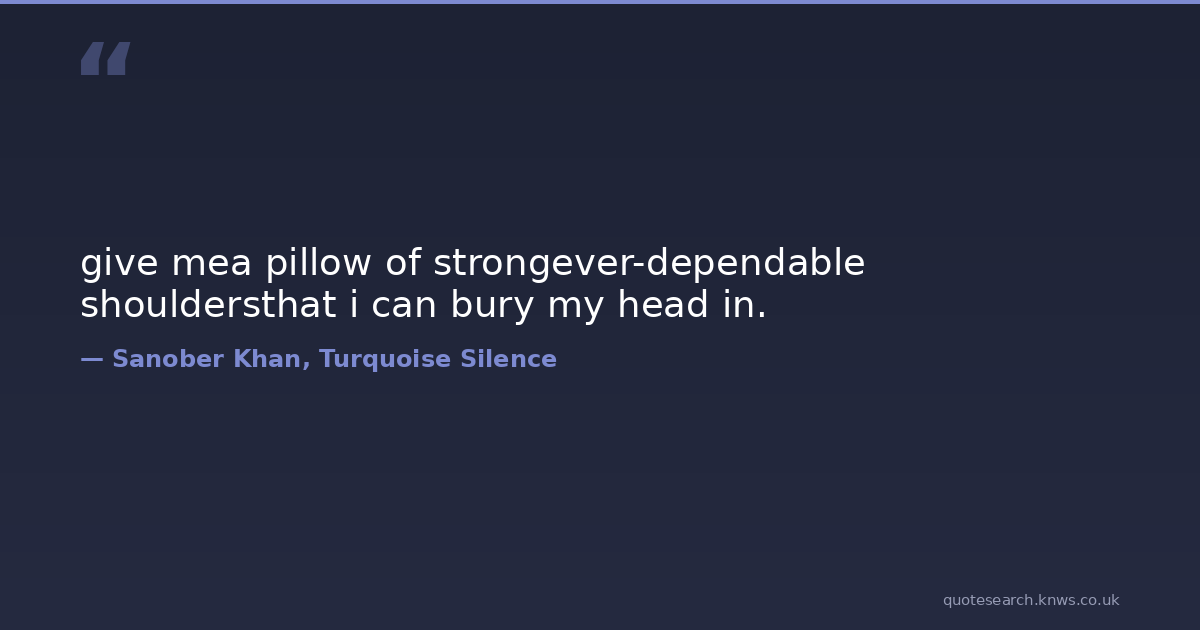 give mea pillow of strongever-dependable shouldersthat i can bury my head in. bond dependable indian-authors pillow poems poetry poetry-quotes poets reliable strong trust trustworthy Download Image Share on X Share on Facebook Copy Link